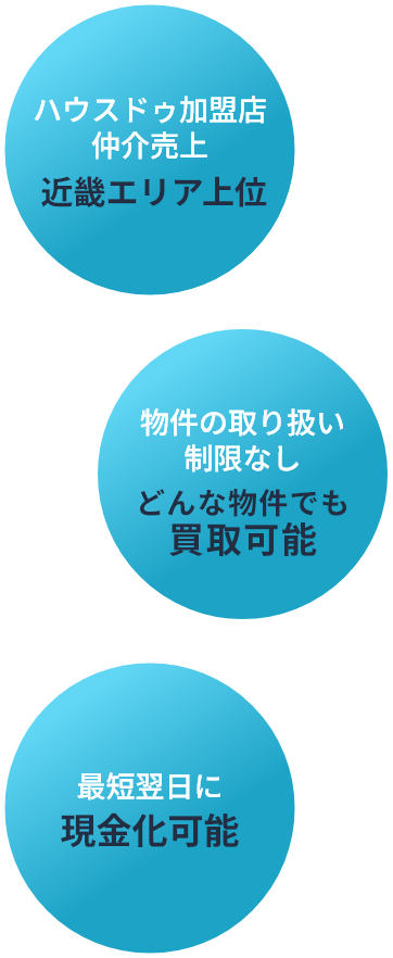 ハウスドゥ城北公園店は、ハウスドゥ加盟店の中でも近畿エリア仲介売上No.1の実績を誇る不動産会社です。 全国規模のネットワークと高い広告力を活かし、豊富な購入希望者へ幅広く物件情報を発信。 地域密着の対応力と実績に裏打ちされた販売力で、 スピーディーかつ納得感のある不動産売却をサポートします。
